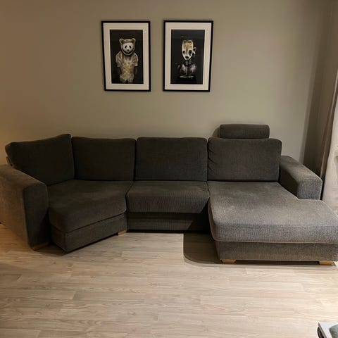 Pent brukt sofa fra IKEA gis bort. Det er katter i hus, så er nokk spor av kattehår. Trekk kan vaskes, evt nye trekk kan kjøpes på IKEA. Sjeselong er flyttbar til begge ender, med lagring under.