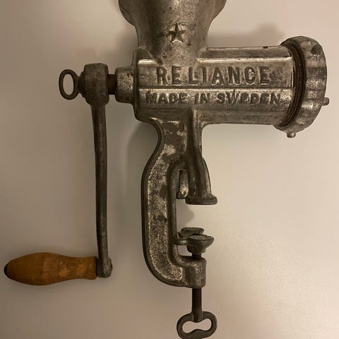 Emaljerte Husqvarna jerngryte fra 50-60 tallet i dus gullfarge. Brukes til å tilberede ovnsretter eller som serveringsfatet. Litt rust i lokket ellers fortsatt i god stand. Målene 24x18x10