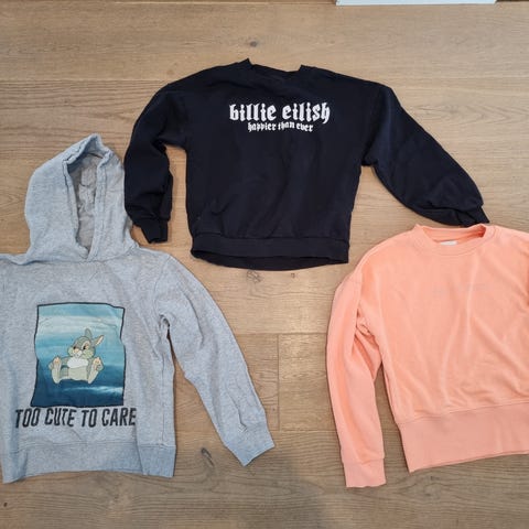 4 hette gensere og 5 vanlige gensere selges da de har blitt for små.
