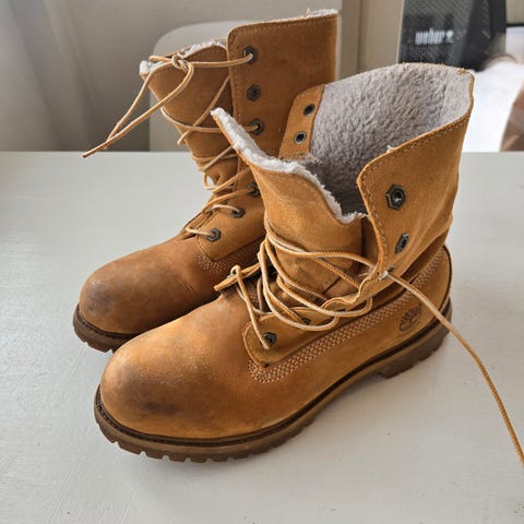 Timberland mukluk vintersko str 7,5W som tilsvarer 38,5-39 selges. Støvlene er brukt noen få ganger og fremstår som nye.