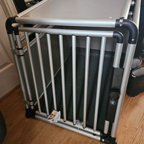 Variocage original single str L- pent og lite brukt.Nøkler følger med.Buret er blitt brukt til standard dachs 12 kg da buret var på sitt minste slått sammen.