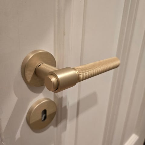 RESERVERT 4 stk dørhåndtak + 1 toalettlås fra Beslag design i rustfritt stål
