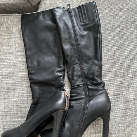 Sko/hæler fra Buffalo i svart skinn. De er brukt noen ganger, mest slitt under (blir fort synlig der pga skinn) men noen små bruksmerker ellers og som ikke er veldig synlig i bruk. Str 38.