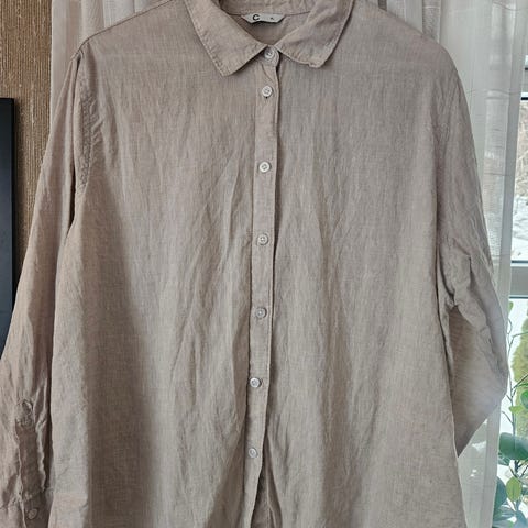 Cubus skjorte for dame i størrelse XS. Skjorten er beige og laget i 100 % lin. Klassisk krage, lange ermer og knepping foran. Passer til hverdagsbruk og som en lett overdel i varmere vær.