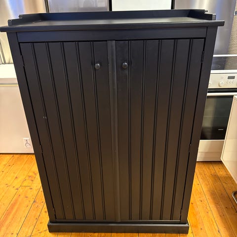 Jeg selger et svart underskap som originalt hørte til et akvarium. Jeg har også brukt det til å ha LP-spilleren på og LP-plater inni skapet. Så her er det mange muligheter.