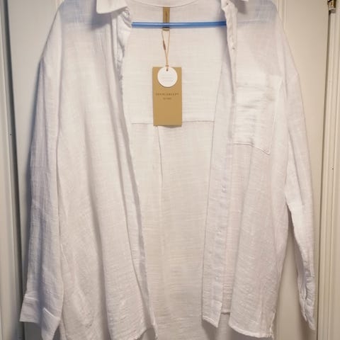Skjorten er kun brukt en gang og vasket en gang. Fremstår som ny. Veldig fin, formsydd modell med brystinnsnitt og innsvinget liv, som gir en flatterende og feminin passform.