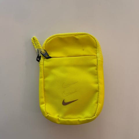 Liten Nike treningsbag i rosa og svart. Bagen har hovedrom med glidelås og innvendig lomme med glidelås for mindre eiendeler. På sidene er det nettinglomme og separat rom med mer slitesterkt materiale, egnet for sko eller vått/tørt utstyr. Bæres med håndtak eller skulderreim. Passer til trening, gym og korte turer.