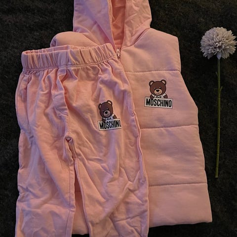 Barneklær for jente i størrelse 86 i rosa nyanser. Pakken inneholder flere plagg, blant annet gensere og bukser/leggings.