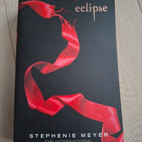 Romanen er andre bok i Twilight-serien og følger Bella Swan og Edward Cullen i en overnaturlig kjærlighetshistorie med vampyrer og varulver. Boken er i pocketformat med svart omslag og blomstermotiv på forsiden. Teksten på omslaget og innholdet er på engelsk.