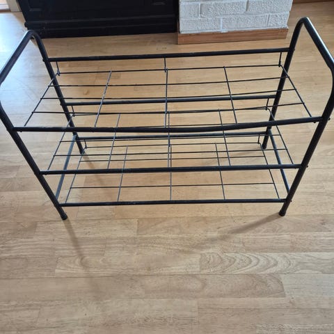Fire skruer for feste i vegg medfølger (festet med tape på bakerste stang på bilde 1).