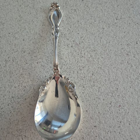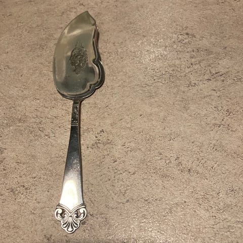 Plett kakespade sølvfarget med blomsterdekor