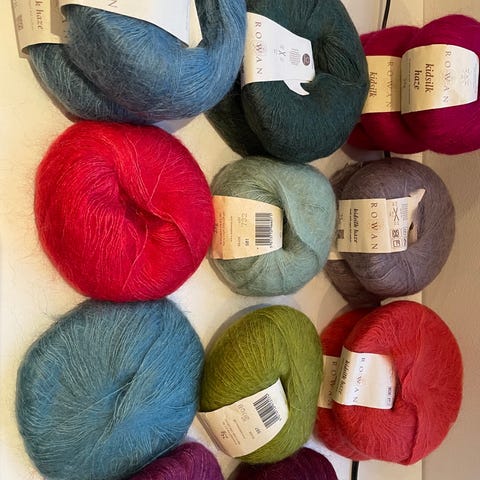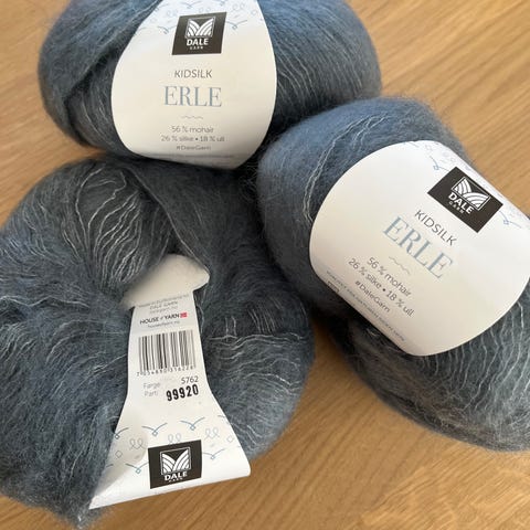 Selger 3 nøster kidsilk i en nydelig grågrønn farge, 240 meter pr stk. se også mine andre annonser.