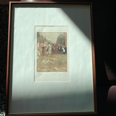 Bistår min mor med å selge noen bilder. Tegningen "Alene" er 33x44 cm inkl rammen. Tegnet av Marit Storrusten.