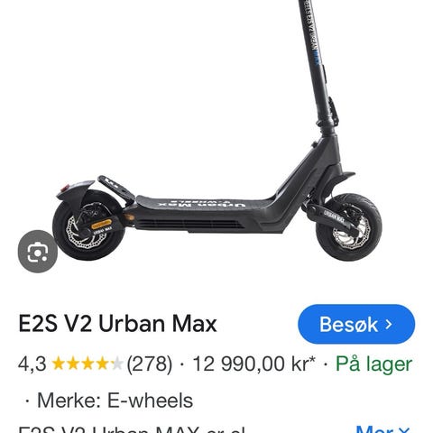 Hei jeg selger min Classywalk s420 da som det er masse snø ute og jeg har ikke så mye interesse i å kjøre. Denne elsparkesykkelen er veldig kraftfull og kan dra deg opp store bakker enkelt. Den er for nå ulovlig på grunn av farten men jeg kan få den til å gå 20kmt om det ønskes. Kan også eventuelt ta flere bilder, det første bildet var da jeg fikk den har gjort noen småting etter på den. Den er helt fin har bestilt bremser framme og bak helt nye og er bare baklys som ikke fyngerer. Kommer med to ladere