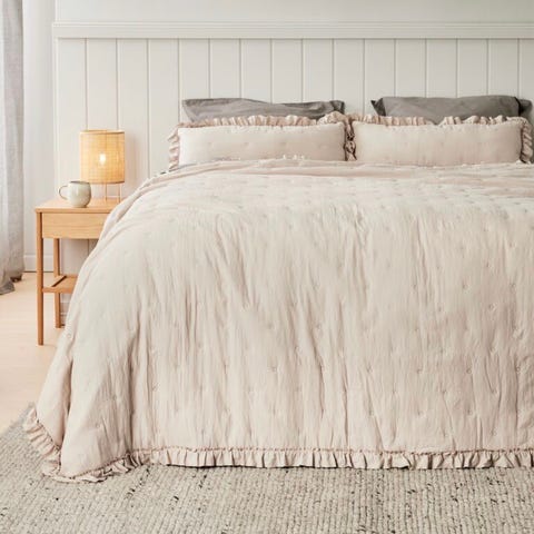 1 Lexington Icons singature star vattert sengeteppe i økologisk bomull, beige 160 x 240