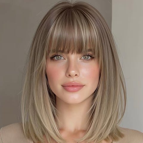 Parykk i kort bob-frisyre med lugg. Håret er blondt med naturlige nyanser. Lengden går til omtrent kjevenakken, med lett oppklippede partier som gir form rundt hodet. Egnet for daglig bruk eller som tilbehør til ulike anledninger. Justering og festemåte er ikke synlig på bildene og bør avklares med selger ved behov.