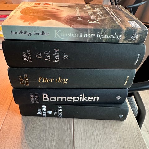 Bokpakke med fire bøker i pocket-/innbundet format: