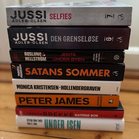 Bøkene dekker ulike sjangre, blant annet kokebok/mat, krim/dokumentar, biografi/sakprosa og historie/samfunn. Passer for lesere som ønsker variasjon i tema og innhold.