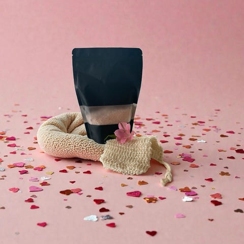 Gaveeske Badesalt, -foam og -powder selges. Ubrukt. Eske åpnet bare for å ta bilde av innholdet ovenfra.
