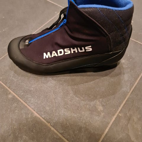 Madshus langrennsstøvler i svart med blå detaljer. Støvlene har glidelåslukking i front og overtrekk som beskytter mot snø og fukt. Yttersålen er tilpasset moderne langrennsbindinger (se bilder for detaljert såleprofil). Myk og polstret innside for økt komfort og støtte rundt ankelen. Egnet til klassisk langrenn på preparerte løyper.