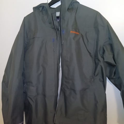 Patagonia jakke for herre i størrelse XXL. Jakken er grønn og laget i polyester. Modellen har krage, knappestolpe i front med trykknapper og flere brystlommer, inkludert lomme med glidelås. Egnet som lett ytterjakke til hverdagsbruk og friluftsaktiviteter.