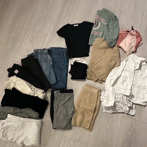 Ingen hull eller flekker. Klærne er godt tatt vare på og kommer fra røykfritt hjem.