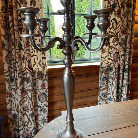 Stilige kandelabere, se annonser m sølvfargede urner som matcher