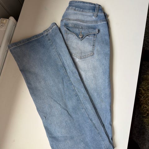 Junkyard bootcut jeans for dame i blå denim. Buksen har størrelse L. Kun brukt 1 gang! Ingen bruksmerker. Nypris 699kr