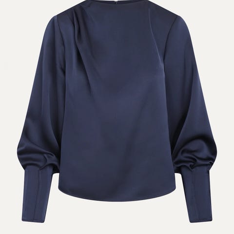 Urban Pioneers bluse for dame i størrelse L. Blusen er hvit og laget av bomull. Den har lange ermer, rund hals og knapper foran. Stoffet har struktur med små prikker og innsving i midjen for en mer definert passform. Passer til hverdagsbruk eller mer pyntede anledninger, og kan kombineres med både bukser og skjørt.