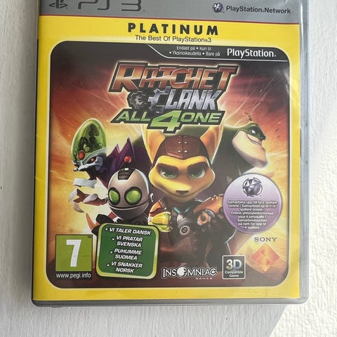 Selger Ratchet and Clank All for One til PlayStation 3, i god stand. Spillet er komplett med manual.