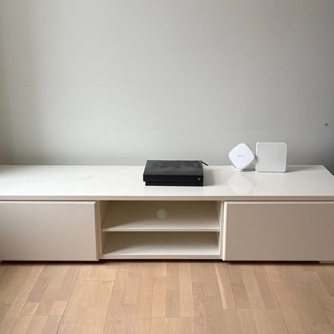 Used TV bench from IKEA, two sections. Some screews are stripped a little. Sell as it is