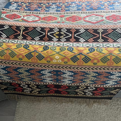 Søkeord: tekstilkunst Håndknyttet, veggteppe, bildeteppe, kunst,