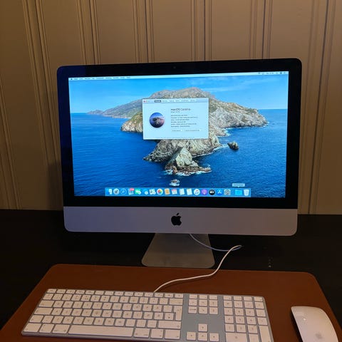 Som vist på bildet følger originalt trådløst Apple-tastatur med. Maskinen står på skrivebord og er i bruk ved fotografering. Normal bruksslitasje etter alder.