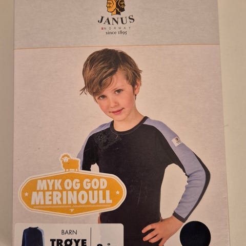 Janus longs for barn i merinoull, unisexmodell i størrelse 130. Ubrukt med merkelapp. Fargen er mest riktig på bilde 2 og 4.