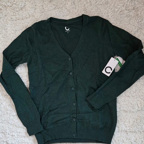 Cubus cardigan for dame i størrelse S. Lang modell med hette og knappelukking foran. Strikket struktur med mønster langs ermene og forstykket. Farge grå. Materiale i hovedsak akryl.