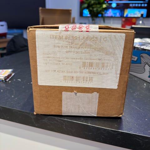 Surging Sparks Pokemon centre etb sealed med promo kort av Shinji Kanda
