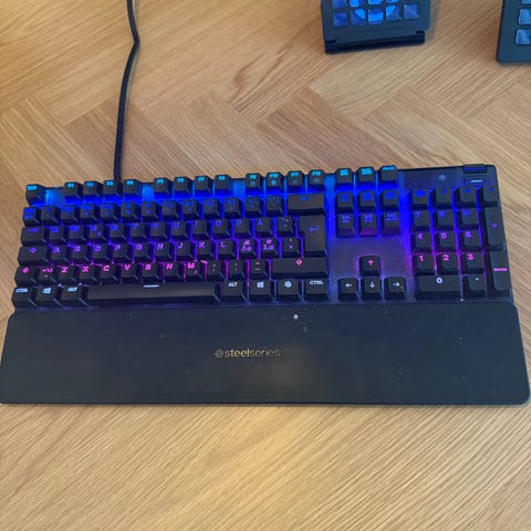 Tastaturet er et fullstørrelse mekanisk tastatur med røde mekaniske brytere. NB! Amerikansk tastaturoppsett, men det er fortsatt mulig å skrive Æ, Ø og Å.