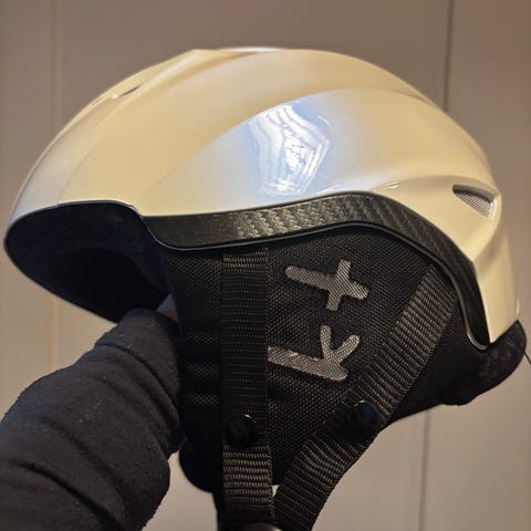Scott Couloir Plus skihjelm i størrelse S (51–55 cm). Hjelmen er hvit med justerbar hakestropp og polstret innside for bedre passform og komfort. Flere ventilasjonsåpninger i toppen gir lufting under bruk. Modellen har feste bak for skibriller. Egnet som alpinhjelm til ski- og snowboardbruk.