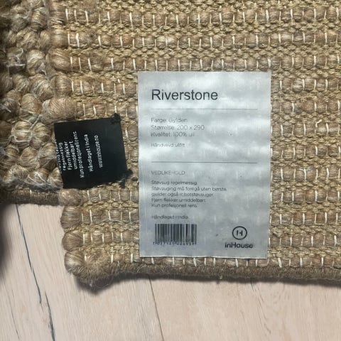 Inhouse Riverstone teppe i gråtoner, størrelse 200x290 cm. Teppe i ull med strukturert, småmønstret overflate som gir et mykt og lunt inntrykk. Rektangulær form som passer godt under sofagruppe eller spisebord i stue eller andre oppholdsrom. Nøytral farge som er lett å kombinere med ulike interiørstiler.