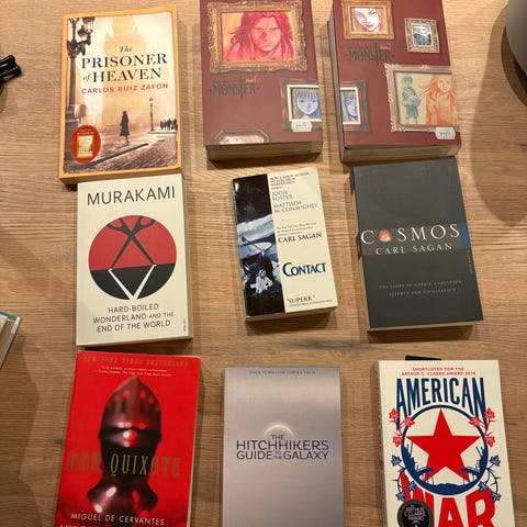 Sett med fem pocketbøker som inneholder følgende titler: