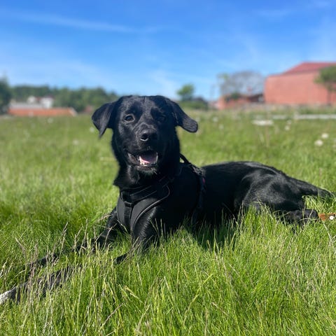 Mia er en typisk labrador. Leken og valpetepper, elsker menesker, får aldri nok kos,