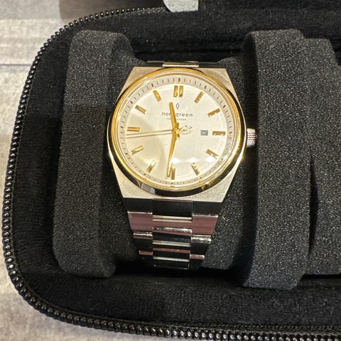 Klokken er strøken og komplett med innerboks og ytterboks, ekstra lenkeledd, mva kvittering. Klokken ble kjøpt av meg mars 2025 fra en annen person på finn.no, men klokken var ubrukt.
