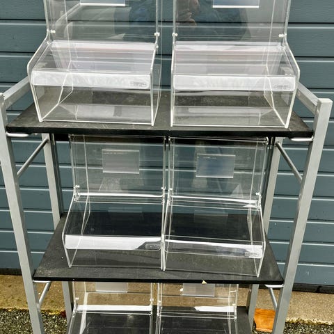 16 roms godterihylle selges. Helt rent, behover ikke for ytterligere vask.