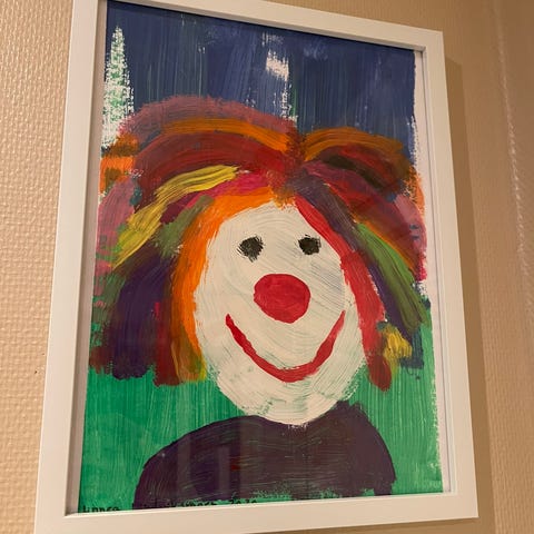 Hjemmelaget maleri av Mummitrollet og vennene hans. Malt av en kommende og fremragende kunstner som kommer til å bli stor i fremtiden.