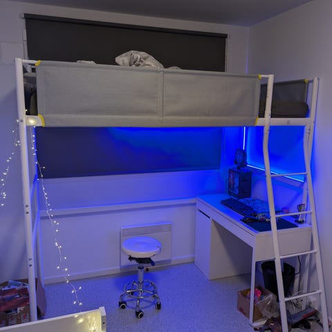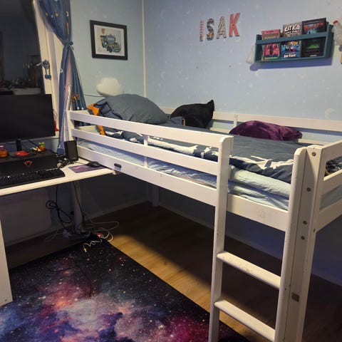 Høyde opp til seng, dvs plassen under senga er 1.70 meter.
