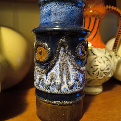 Liten RETRO hankevase i blomsterdekor/orange glasur