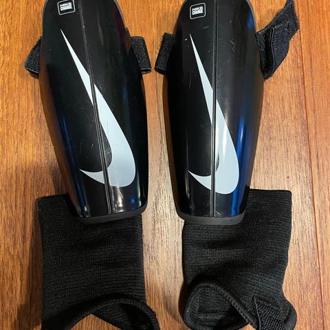 Nike Charge leggskinn for fotball. Leggskinnene har hard plastskall i svart med hvite detaljer og elastisk sokk med stropp under foten for å holde dem på plass. Baksiden har polstring for økt komfort mot leggen. Egnet til bruk på fotballtrening og kamp. Størrelse fremgår av bildene med målebånd som referanse.