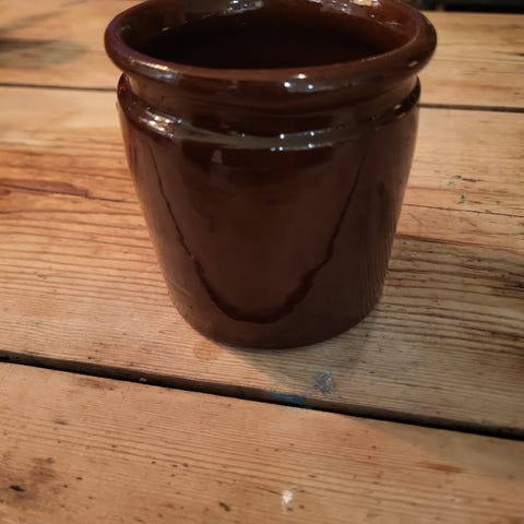 Sylinderformet med bred åpning og markert kant øverst. Egner seg til oppbevaring på kjøkken, som redskapsholder eller til dekorasjon. Mindre bruksmerker i glasuren kan forekomme, se bilder for detaljert inntrykk av overflaten. Fra Höganäs sin fabrikk i Skåne.