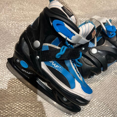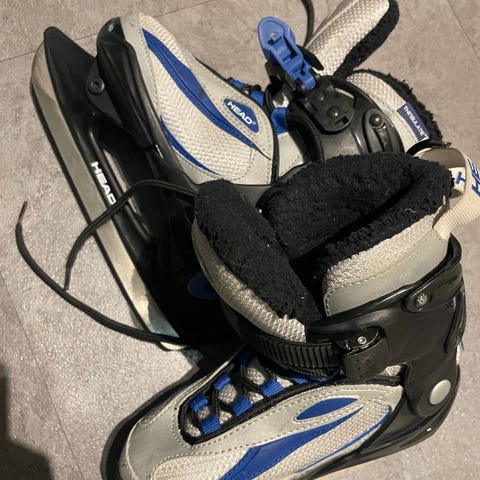Head barneskøyter i blå og grå farge. Modellen har justerbar størrelse (30-33) med kombinasjon av lisser, spenne og borrelås for bedre passform rundt foten. Overdelen er i tekstil og syntetisk materiale med polstret innside for økt komfort. Skøytene har fast hælkappe og ankelstøtte, samt svart skøytestål egnet til bruk på isbaner og frosne flater. Passer til barn som trenger stabile skøyter til lek og enkel skøyteaktivitet.