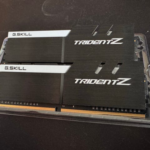 Sett med DDR4-minne fra G.Skill sin Trident Z Neo-serie. Modellen på modulene er F4-3600C16D-16GTZNC. Hver pakke består av 2 x 8 GB moduler, totalt 16 GB per pakke. Bildene viser to pakker, som samlet gir 32 GB fordelt på 4 moduler à 8 GB.